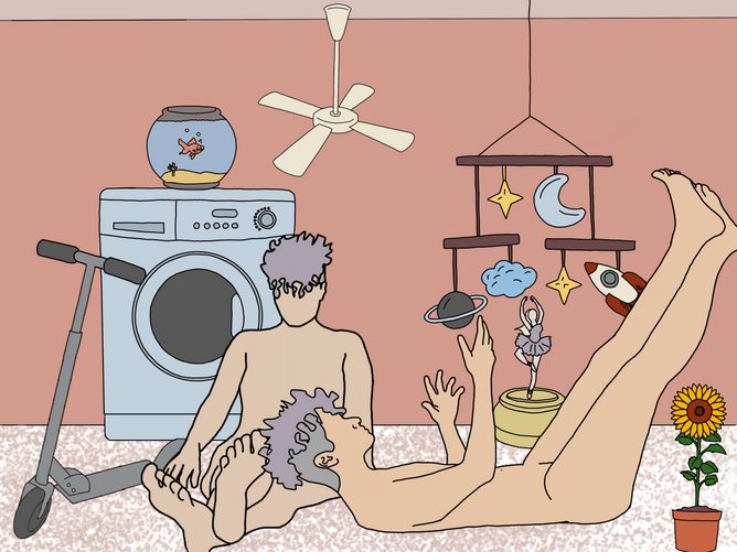 العمل‭ ‬مستوحى‭ ‬من‭ ‬فترة‭ ‬الكورونا‭ ‬والحجر‭ ‬المنزليّ،‭ ‬هو‭ ‬نوع‭ ‬من‭ ‬الهروب‭ ‬والتّرحال‭ ‬من‭ ‬الواقع‭ ‬والتّأقلم‭ ‬مع‭ ‬الوضع‭ ‬القائم‭ ‬المفروض‭ ‬عليّ‭ ‬من‭ ‬خلال‭ ‬مونولوچ‭ ‬ذاتي‭ ‬يدور‭ ‬بيني‭ ‬وبين‭ ‬نفسي‭ ‬داخل‭ ‬غرفتي‭ ‬الصّغيرة‭ ‬الآخذة‭ ‬بالتّغيّر. ‬أقوم‭ ‬بهذا‭ ‬المونولوچ‭ ‬بهدف‭ ‬كسر‭ ‬الرّوتين‭ ‬اليوميّ‭ ‬بالإضافة‭ ‬الى‭ ‬استعمال‭ ‬أغراض‭ ‬عديدة‭ ‬موجودة‭ ‬في‭ ‬الغرفة،‭ ‬وإضافة‭ ‬مشاهد‭ ‬وأحداث‭ ‬بواسطة‭ "‬الثوب‭ ‬العري".‬